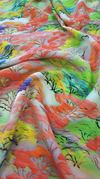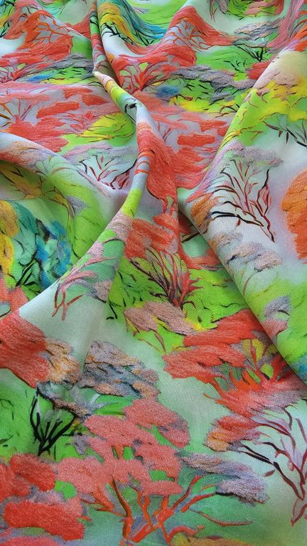 Тканое жаккардовое полотно на вискозной основе.